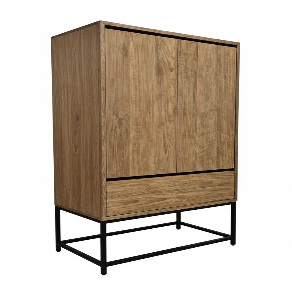 Deze kast combineert gesloten bergruimte met één soepel lopende lade op rails. De deuren openen met push-to-open, waardoor het front strak blijft zonder grepen.